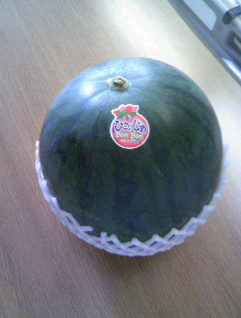 小玉スイカだった(妹よ、残念ながら志村食いはできず…)ので、今日早速作業療法室のキッチンで切り分けて、お昼に頂く。